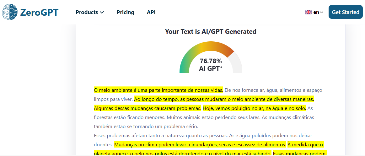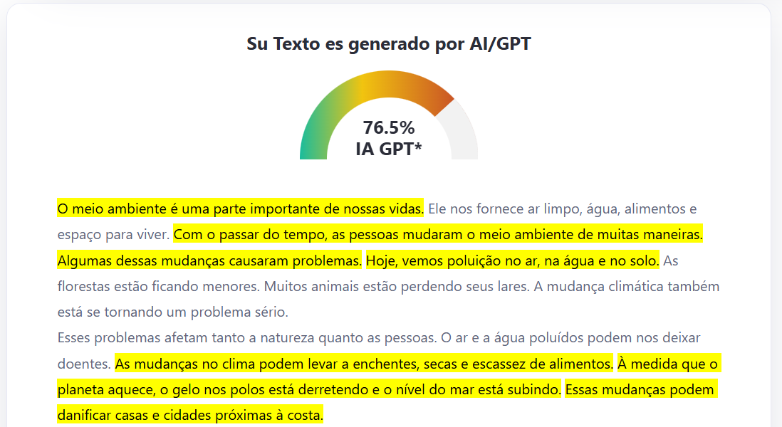 Para referência, verifiquei a pontuação de IA deste conteúdo e constatei que 76,5% foi gerado por IA: