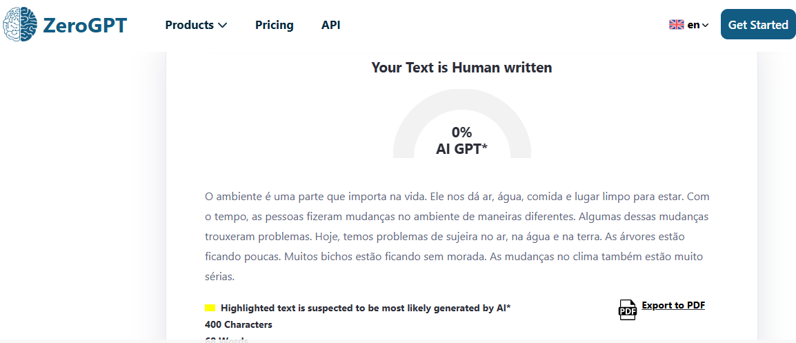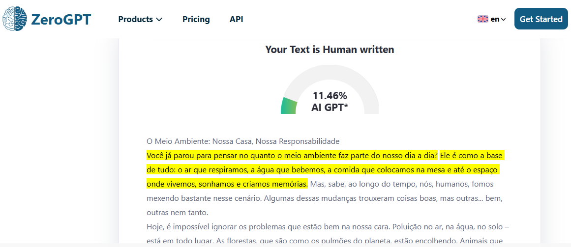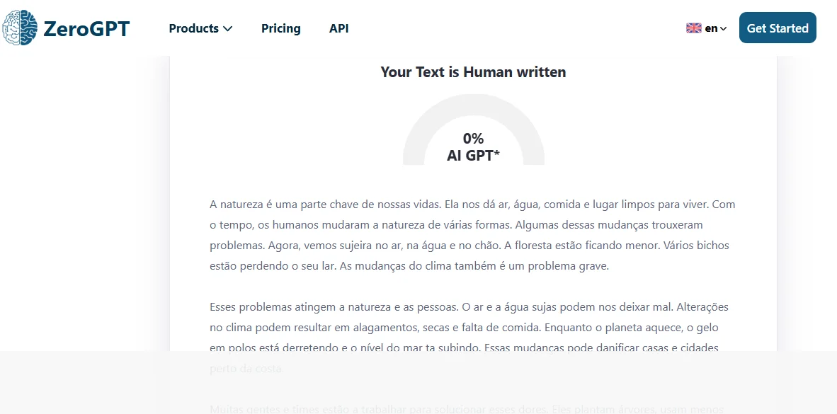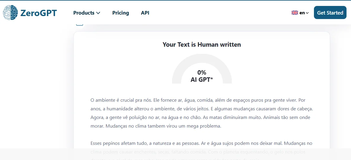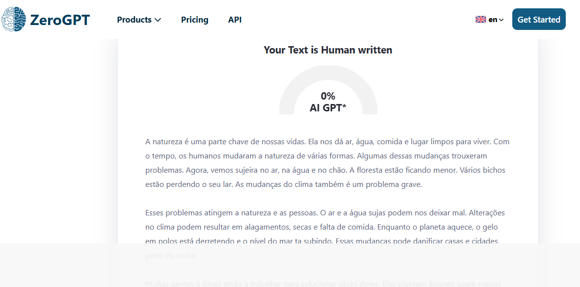 Os resultados foram bastante gratificantes. O texto revisado possuía uma qualidade semelhante à humana, sem detecção por IA. Surpreendentemente, os três resultados passaram pelo ZeroGPT sem qualquer intervenção de IA no conteúdo.