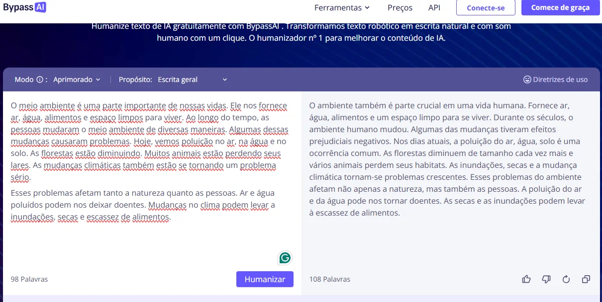 Para eliminar esse problema, os humanizadores de IA podem ajudar os escritores a converter textos gerados por IA em uma forma mais natural. Essas ferramentas analisam o texto gerado por IA e reescrevem o conteúdo ou reformulam algumas partes para contornar a detecção por IA.