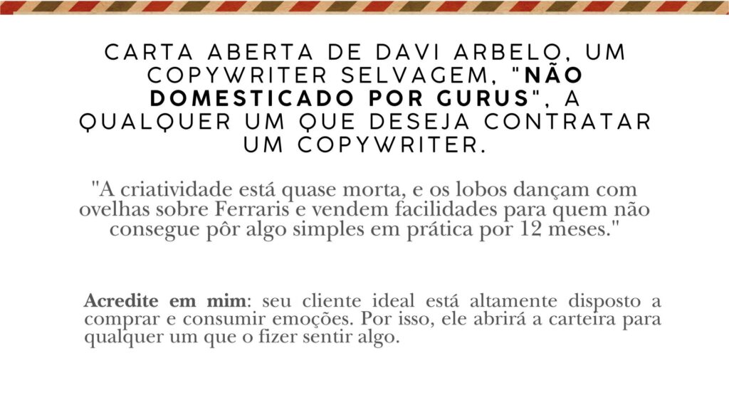 É importante ressaltar que essas cartas ensinam marketing, disciplina e vida. Cada página expressa a honestidade brutal e a experiência de vida de Gary. Se você é iniciante em copywriting ou alguém mais experiente que ainda não leu esse livro, só posso dizer uma coisa: é como um MBA gratuito que você realmente vai gostar de ler.